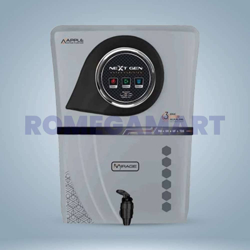 The Apple Mirage Grey RO water purifier is built for comprehensive purification with added mineral benefits. Featuring RO, UV, UF filtration, copper infusion, alkaline filter, mineral cartridge, and TDS control, it delivers safe and enriched drinking water. The alkaline and mineral technologies help maintain balanced pH and improve water taste. With a 13-liter storage capacity, it ensures uninterrupted water availability throughout the day. Its modern grey design complements contemporary kitchens. Designed for multiple water sources, this purifier ensures consistent and reliable performance. Durable construction and easy maintenance make it suitable for long-term home use. Apple Mirage provides pure, mineral-rich hydration for everyday living.
