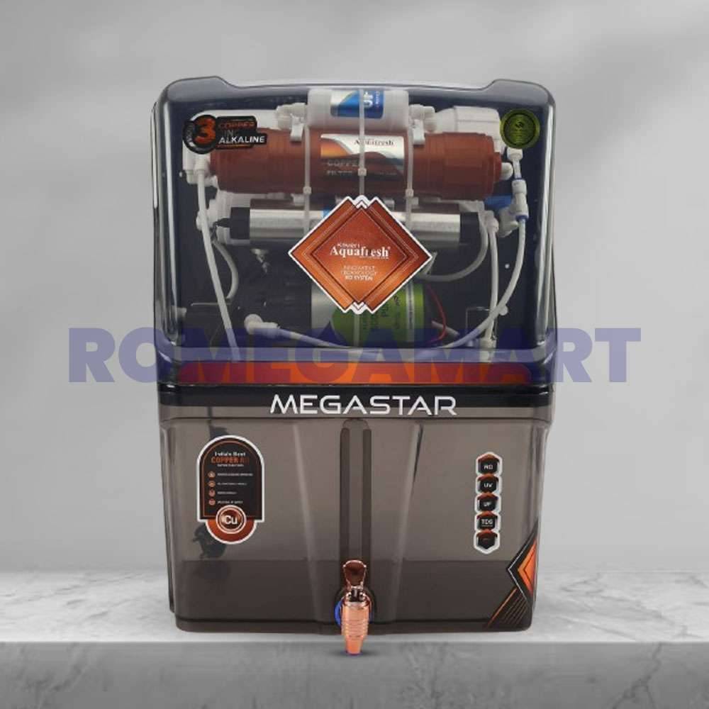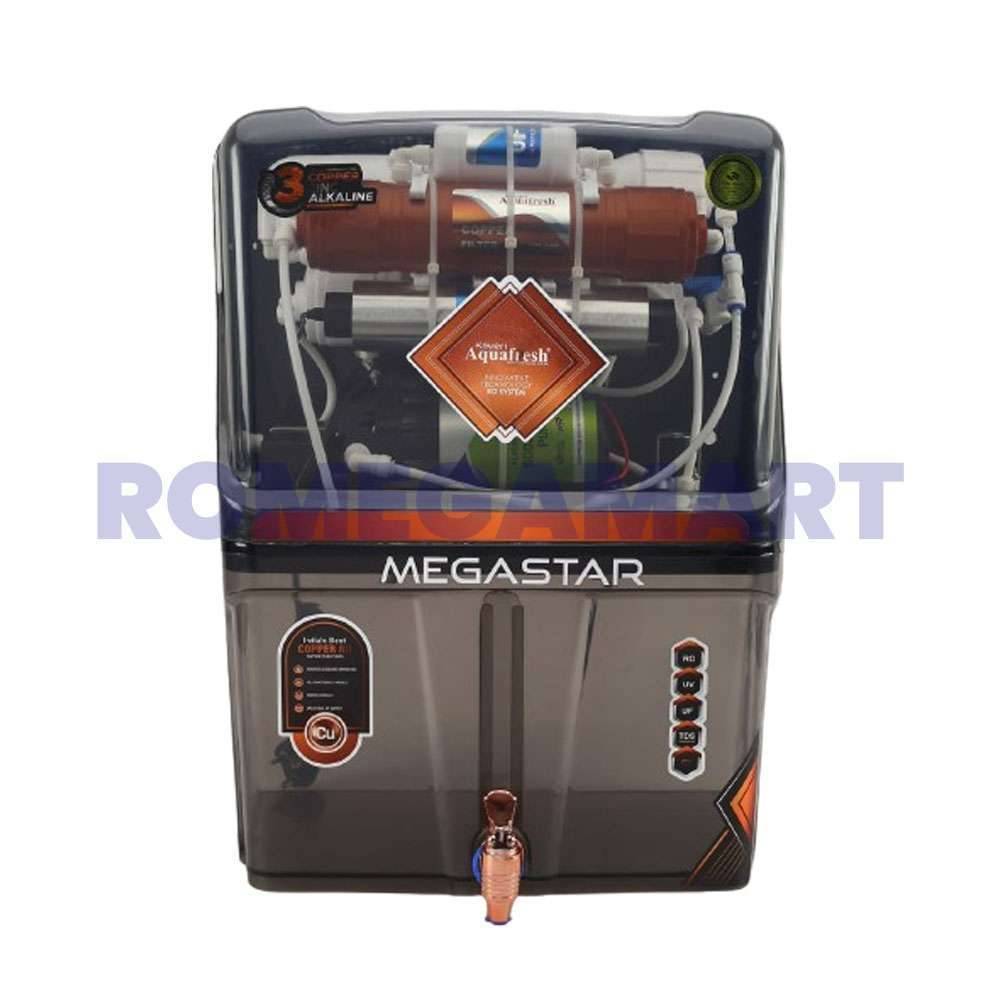 The Kaveri Megastar 12 Liter Storage Grey Transparent Color RO+UV+UF+Alkaline+TDS Water Purifier for Home is a smart water purification solution that delivers safe, healthy, and great-tasting drinking water for your family. With its **multi-stage purification system—RO, UV, UF, Alkaline, and TDS control—it effectively removes dissolved salts, bacteria, viruses, heavy metals, and harmful impurities while retaining essential minerals. The Alkaline filter enhances pH levels and enriches water with minerals, ensuring a healthier and more refreshing taste. UV purification adds an extra layer of safety against germs, and the UF membrane improves water clarity. Its 12-liter storage tank ensures a consistent supply, making it perfect for small to medium-sized families. The transparent grey body not only looks modern but also allows easy monitoring of water levels. Designed to handle municipal, borewell, and hard water sources, this purifier combines technology, style, and durability to keep your family hydrated with pure water every day.